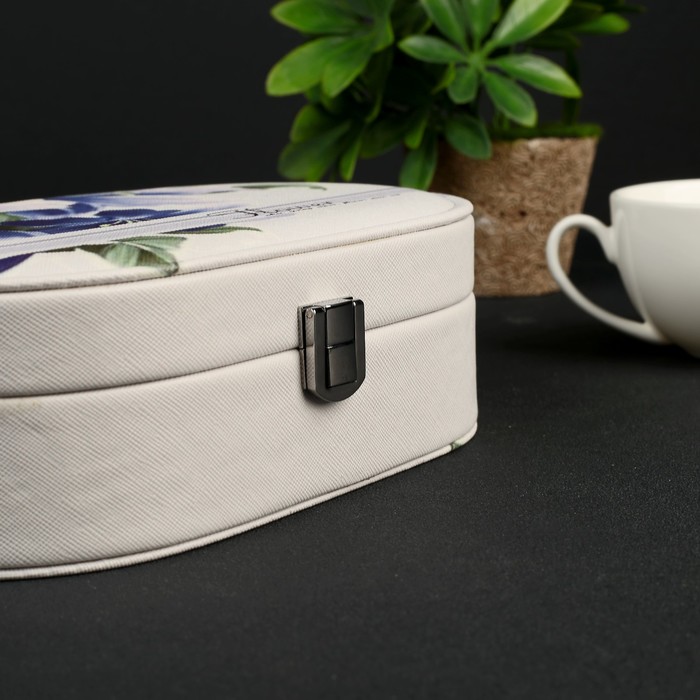Шкатулка кожзам для украшений "Синие лилии" 6,5х22,5х14 см
