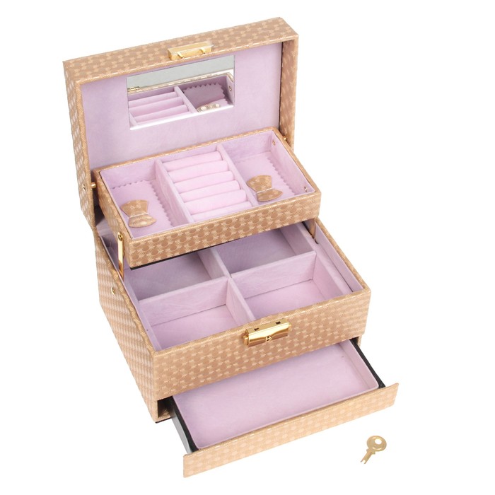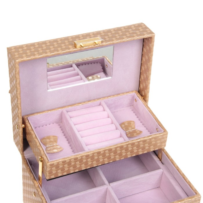 Шкатулка кожзам для украшений "Солнцестояние" золото 15х18х12 см