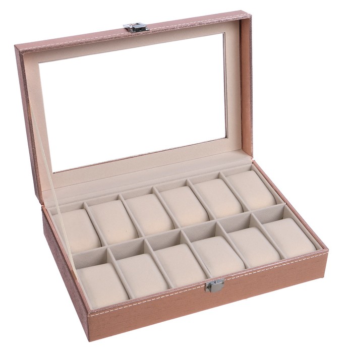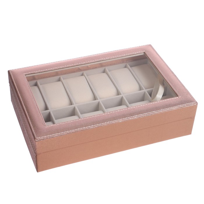 Шкатулка кожзам под часы 12 отделений "Космос. Розовое золото" 8х30х20,5 см