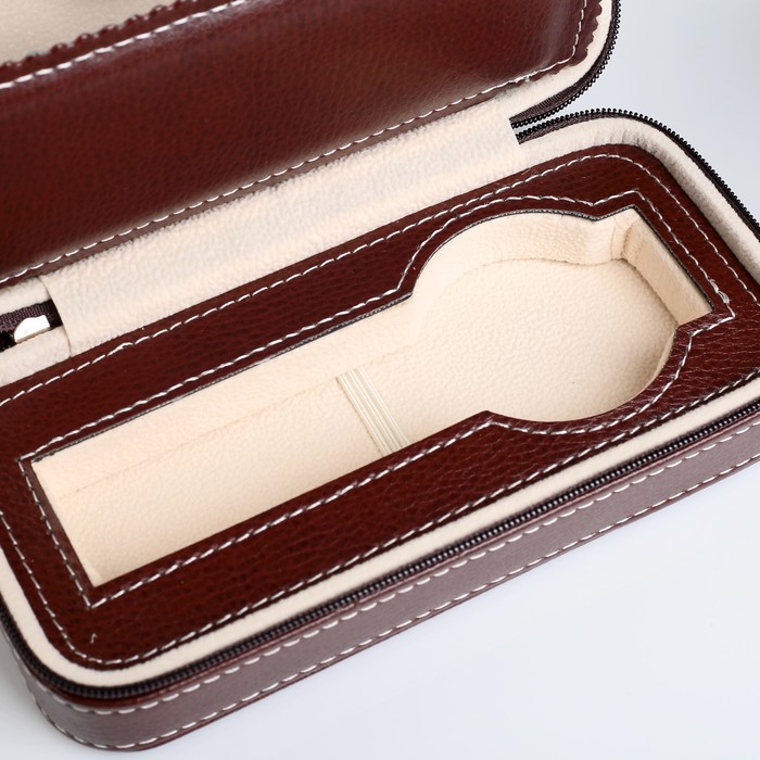 Шкатулка кожзам под часы 2 отделения "Белая строчка на кофейном" 6х18х8,7 см