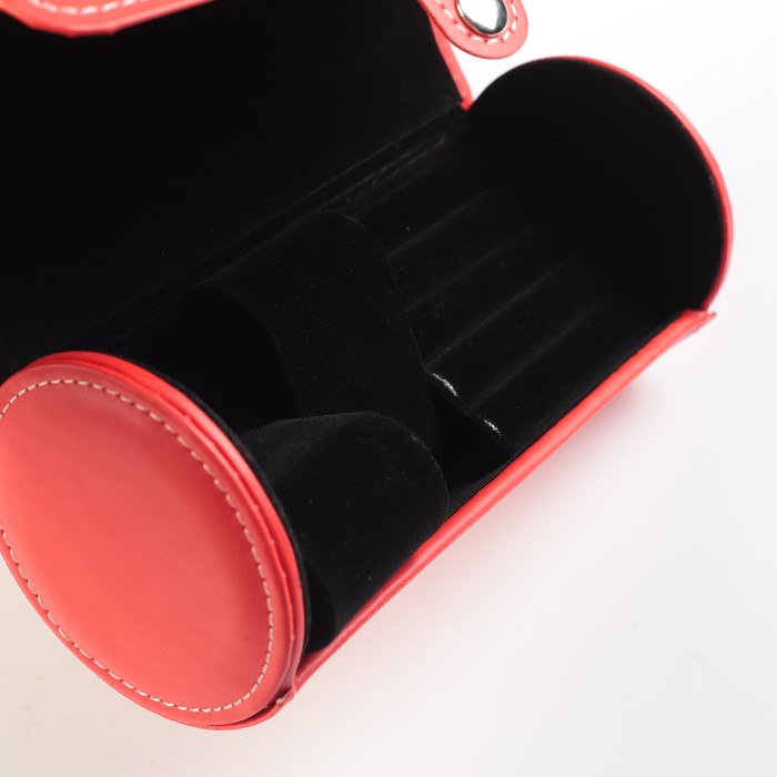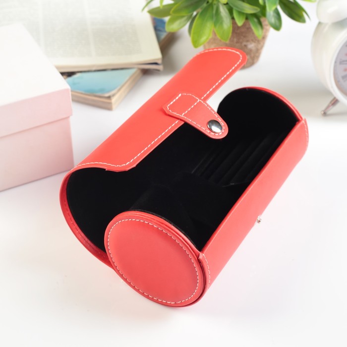 Шкатулка кожзам под часы 2 отделения и бижутерию "Белая строчка на красном" 8,5х19х8,5 см