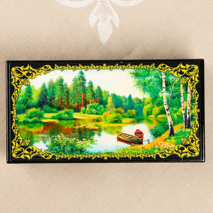 Шкатулка-купюрница «Летняя природа. Вид 49», лаковая миниатюра, 9х17 см