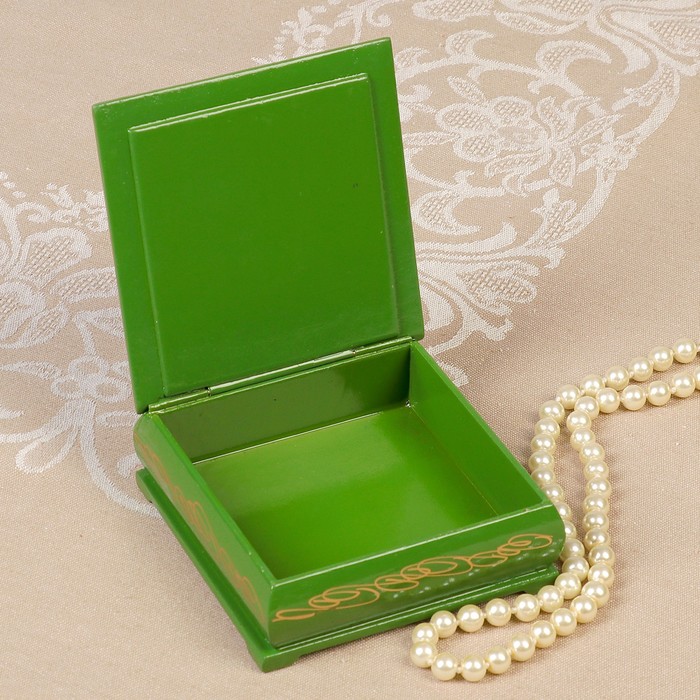 Шкатулка «Лебеди», зелёная, 10×10 см, лаковая миниатюра