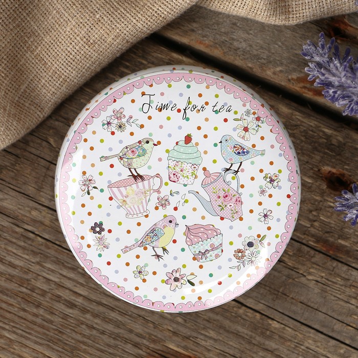 Шкатулка металл круг "Чаепитие и птички" 3,5х8,5х8,5 см