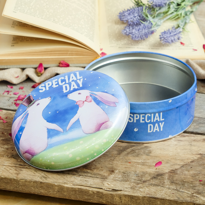 Шкатулка металл круглая "Нарядные зайчата" 6х14х14 см