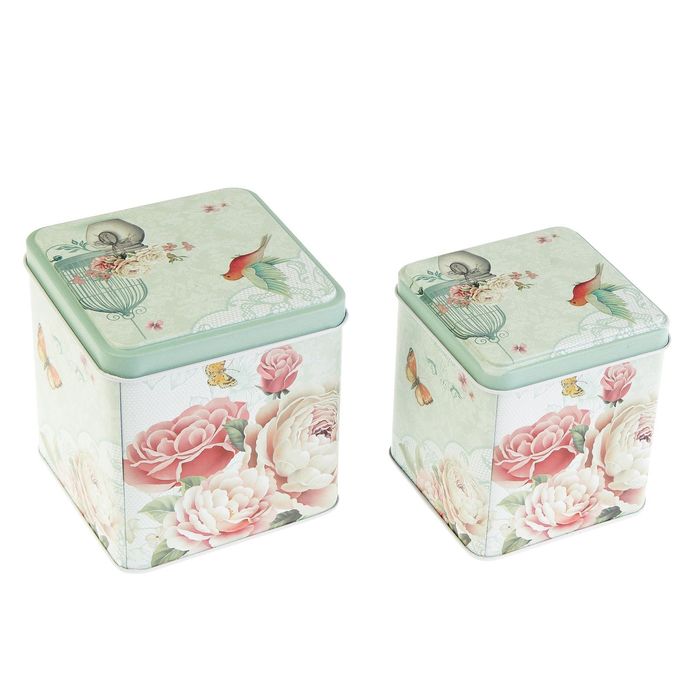 Шкатулка металл "Пионы. Винтаж" набор 2 шт 11х10,5х10,5 10х9х9 см