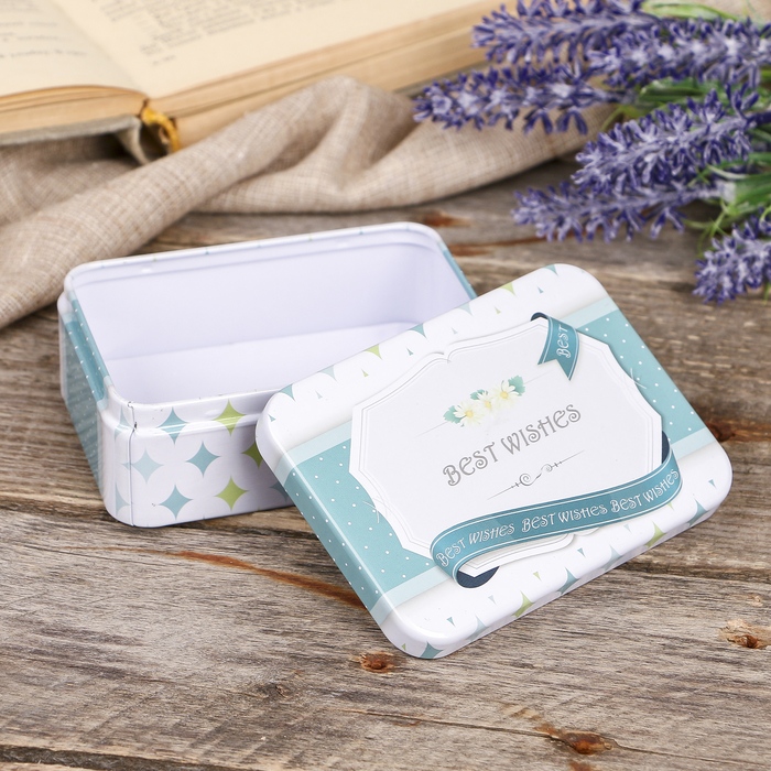 Шкатулка металл прямоугольная "Зеленые ромбики и горох" 4х10,7х7,7 см