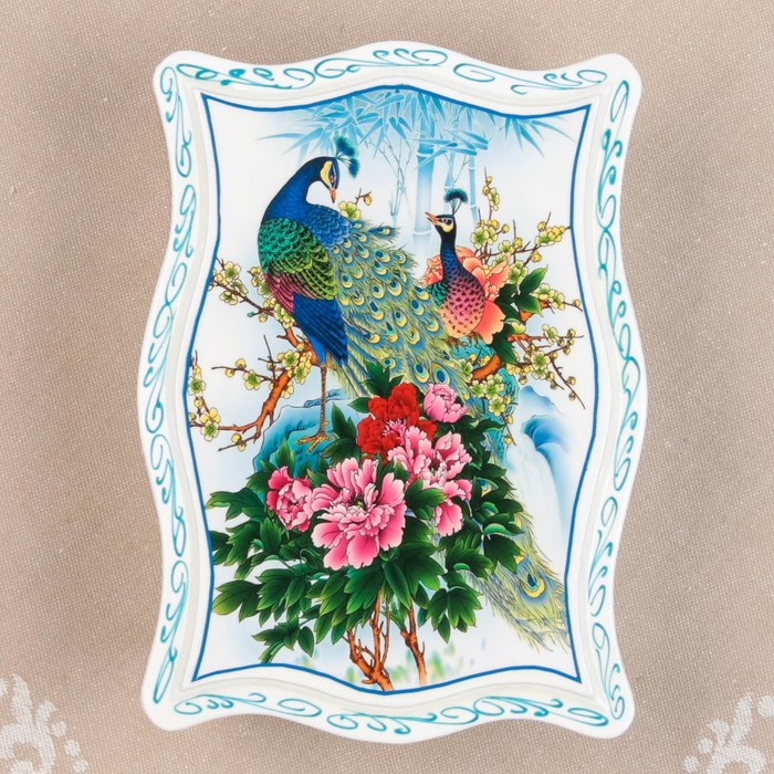 Шкатулка «Павлин», белая, 13х18 см, лаковая миниатюра
