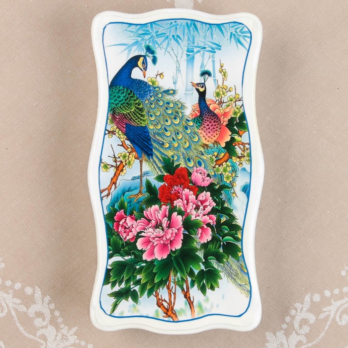 Шкатулка «Павлин», белая, 23×12 см, лаковая миниатюра