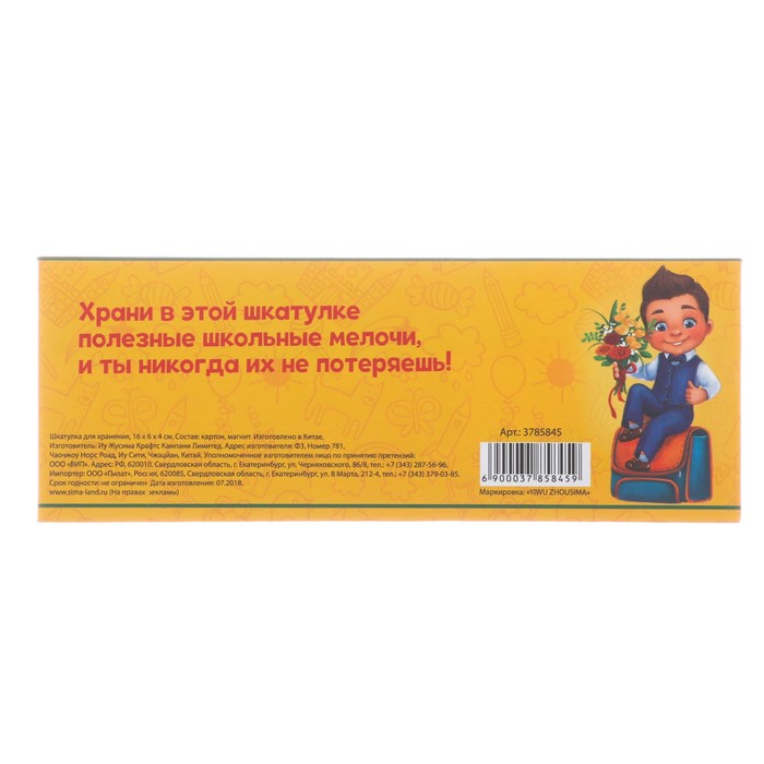 Шкатулка - пенал "Мои школьные мелочи", 16 х 6 х 4 см