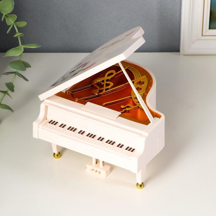 Шкатулка пластик музыкальная механическая "Рояль с цветами" белый завод.ключом 8х14,5х13см