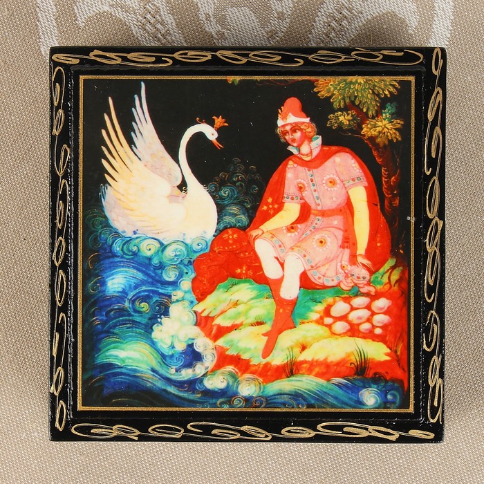Шкатулка «Принцесса-лебедь», 10х10 см, лаковая миниатюра