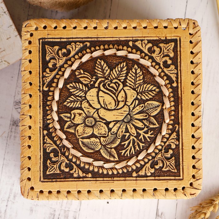 Шкатулка «Розочка», 15×15×7 см, береста