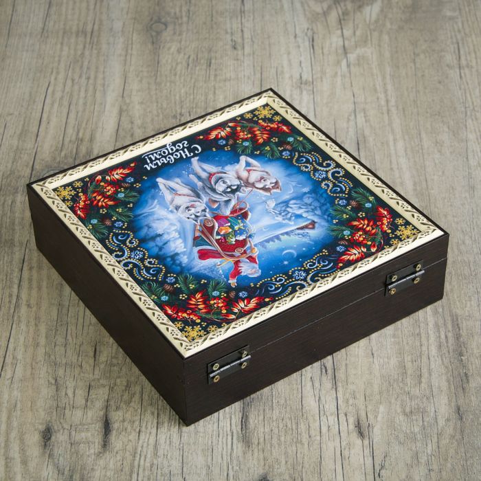 Шкатулка "С Новым годом" венге 20х20х6,5 см