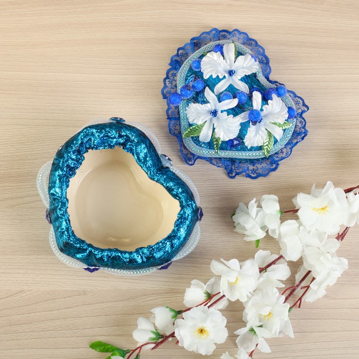 Если у вас есть ювелирные украшения и различная бижутерия, то обязательно должна быть и шкатулка. Тогда в нужный момент вы найдёте подходящий аксессуар или положите его на место, чтобы не потерять. Шкатулка "Сердце", керамическая, с декором, микс предназначена как раз для хранения украшений.
