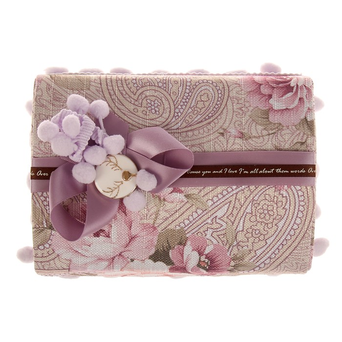 Шкатулка текстиль для украшений "Цветы с помпонами" сирень 9х16,5х12 см