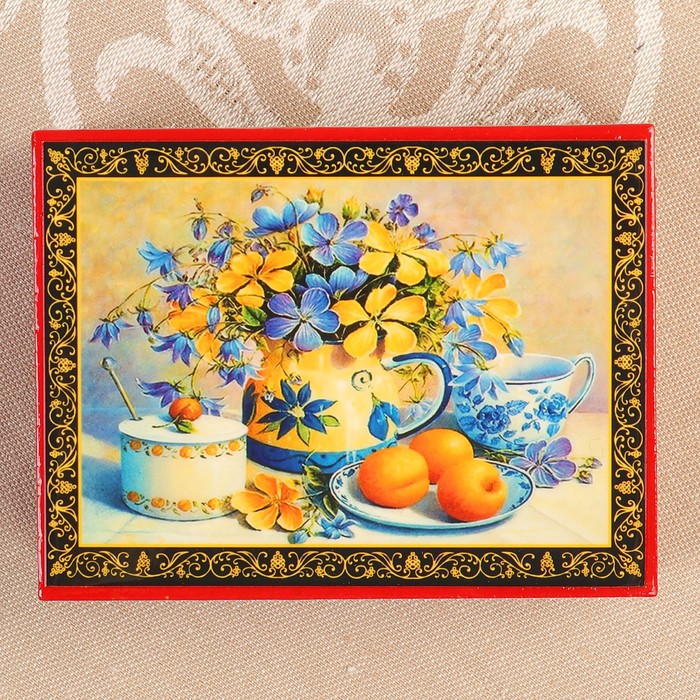 Шкатулка «Утренняя трапеза», 8×10,5×4,5 см, красная, лаковая миниатюра