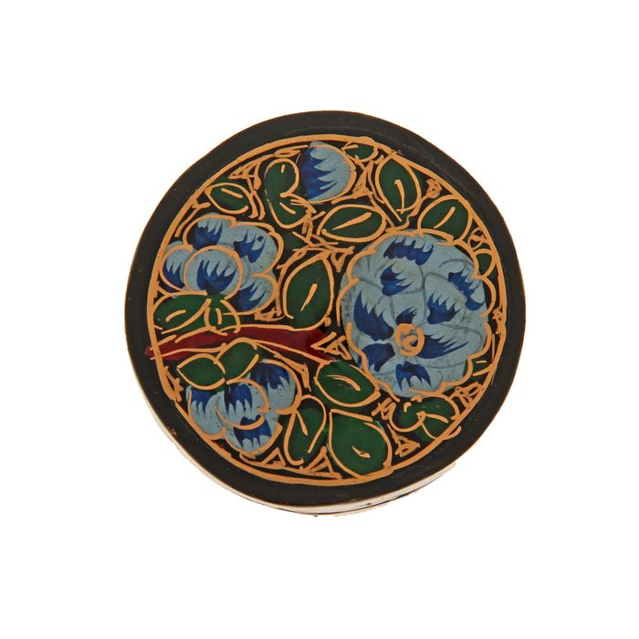 Невероятно красивая шкатулка ручной работы выполнена в оригинальной технике папье-маше. Это не простой декоративный ларчик, а настоящая сокровищница. У неё небольшие размеры, но зато она сохранит самые сокровенные и дорогие вам драгоценности. Узоры кропотливо созданы мастерами-ремесленниками в соответствии с древними индийскими традициями.
