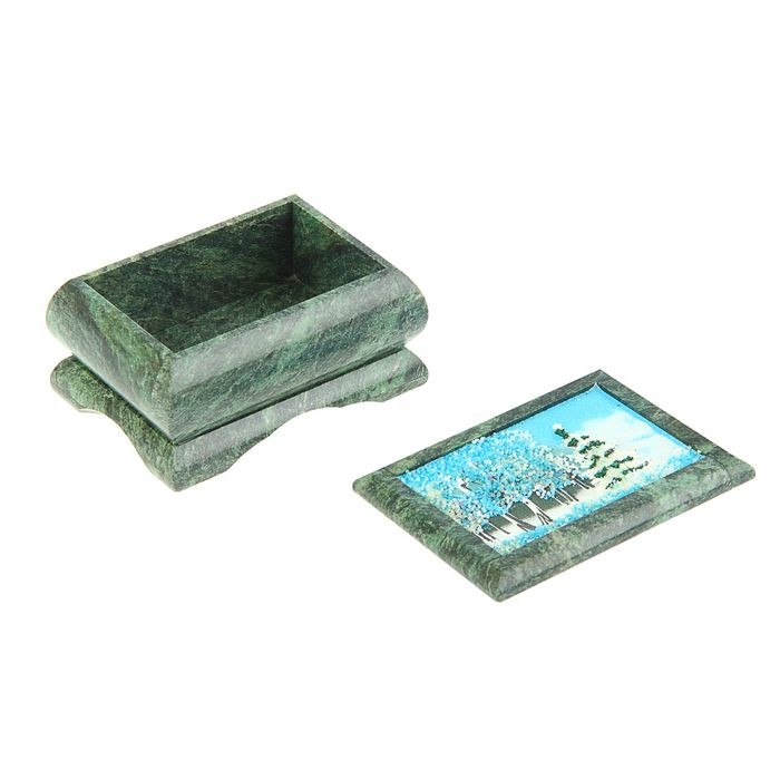Шкатулка "Зима", каменная крошка станет замечательным подарком спортсменам, врачам и фармацевтам, юристам и бизнесменам, учащимся и обучающим. На лицевой поверхности изделия допускаются прожилки и полосы, не ухудшающие декоративные свойства. На обороте допускаются незначительная пористость, волнистость, следы инструмента.