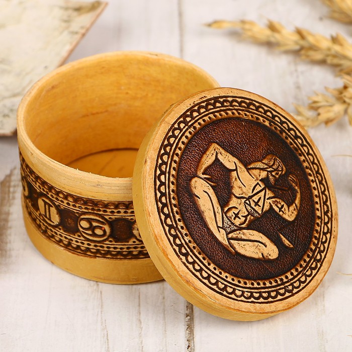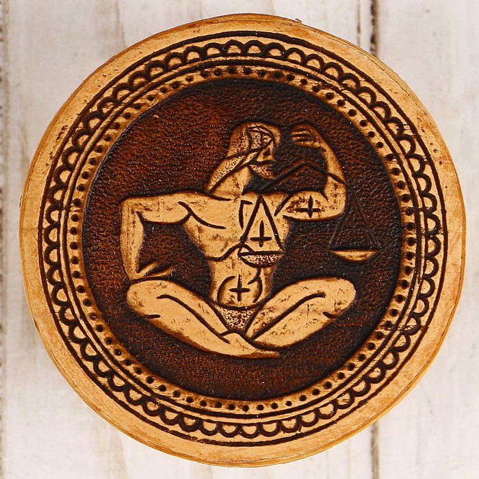 Шкатулка «Знак зодиака», весы, 6х6х3,5 см, береста