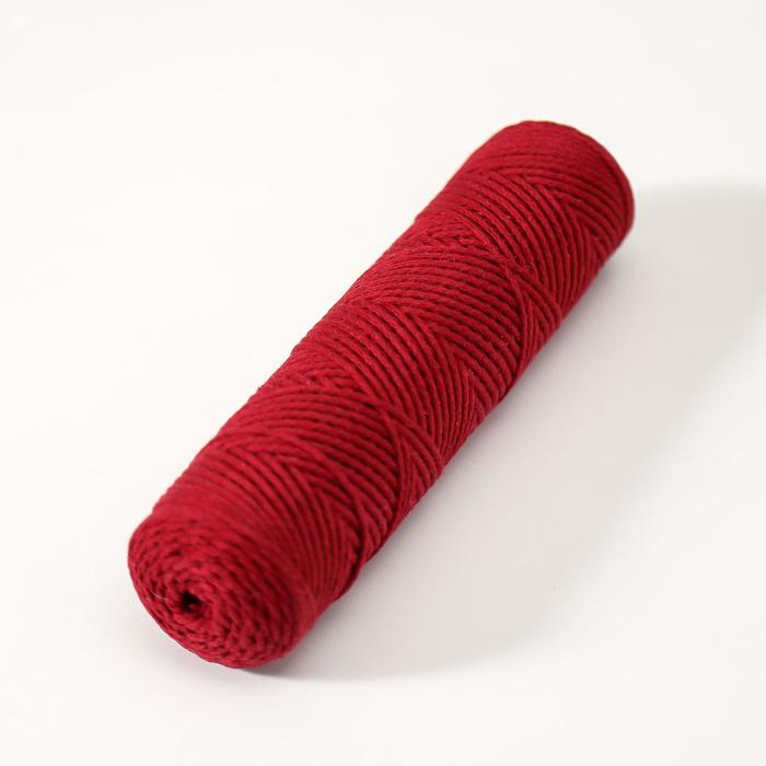 Шнур для вязания без сердечника 100% хлопок, ширина 2мм 100м/95гр (2172 бордовый)