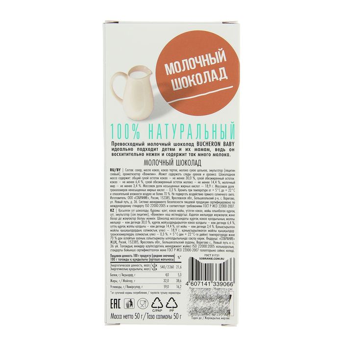 Шоколад "Bucheron Baby" молочный шоколад 50 гр