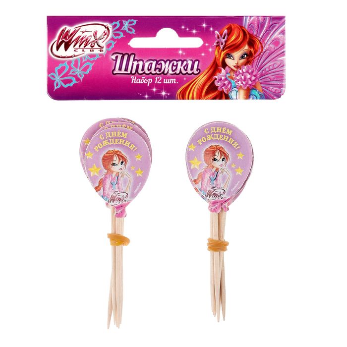 Шпажки "С Днем Рождения", феи ВИНКС, Блум, (набор 12 шт)