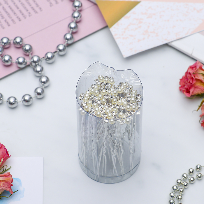 Шпилька для волос "Цветочек" 1*6 см, три бусины