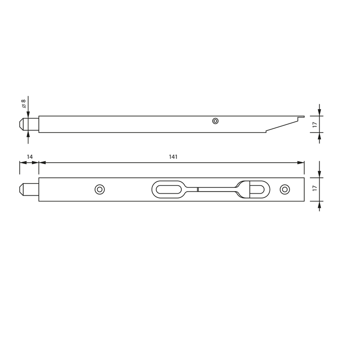 Шпингалет торцевой врезной ,140 мм, цвет хром