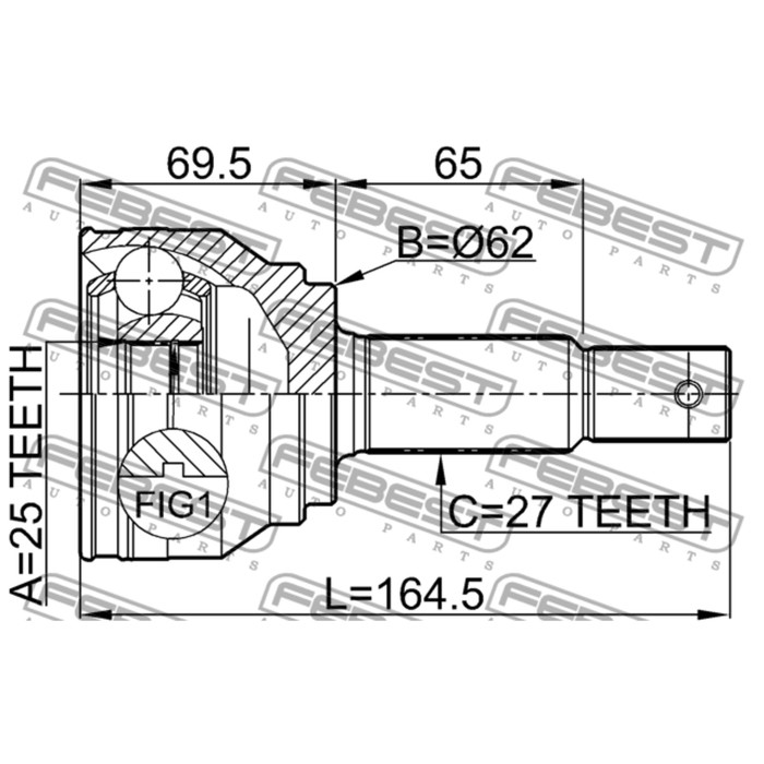 Шрус наружный 25x62x27 febest 2210-nsp27a48