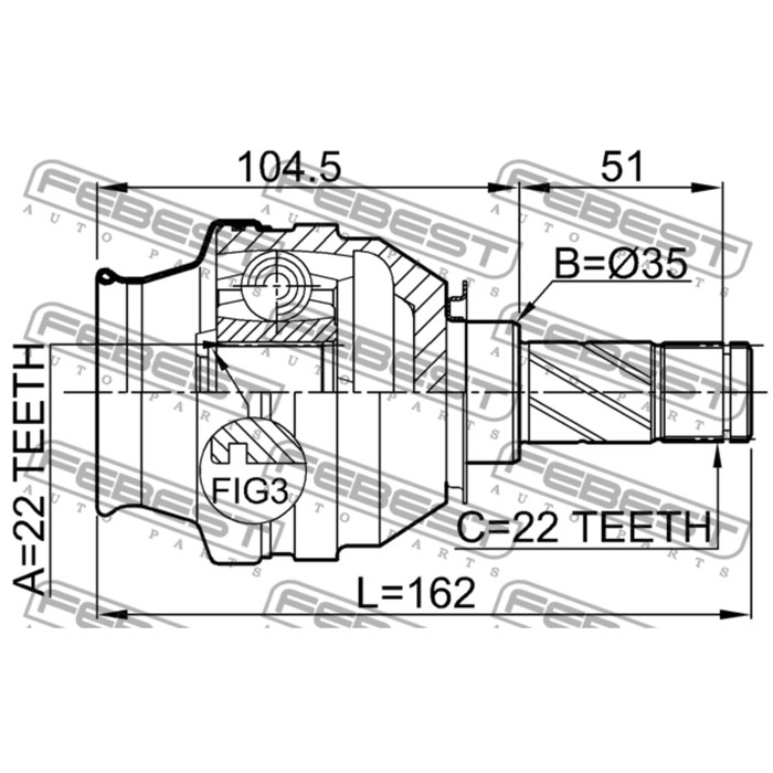 Шрус внутренний 22x35x22 febest 1811-zaf