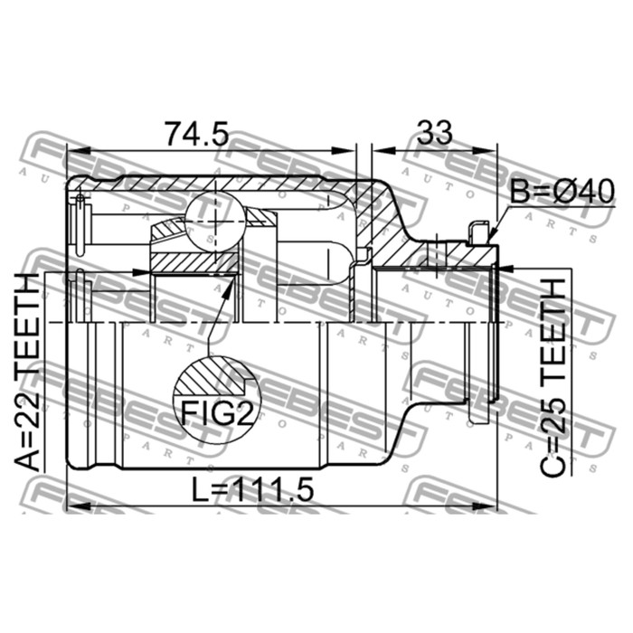 Шрус внутренний 22x40x25 febest 0811-1001