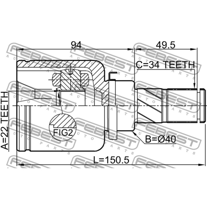 Шрус внутренний левый 22x40x34 febest 2111-cdhlh