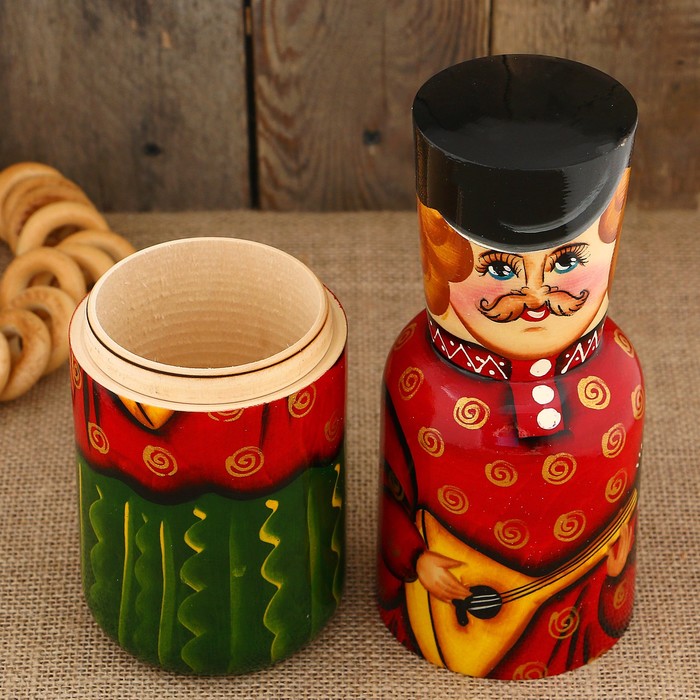 Штоф «Купец с балалайкой», красная рубаха, чёрная кепка, 0,5 л, 33 см — сувенир в полном смысле этого слова. И главная его задача — хранить воспоминание о месте, где вы побывали, или о том человеке, который подарил данный предмет. Преподнесите эту вещь своему другу, и она станет достойным украшением его дома.