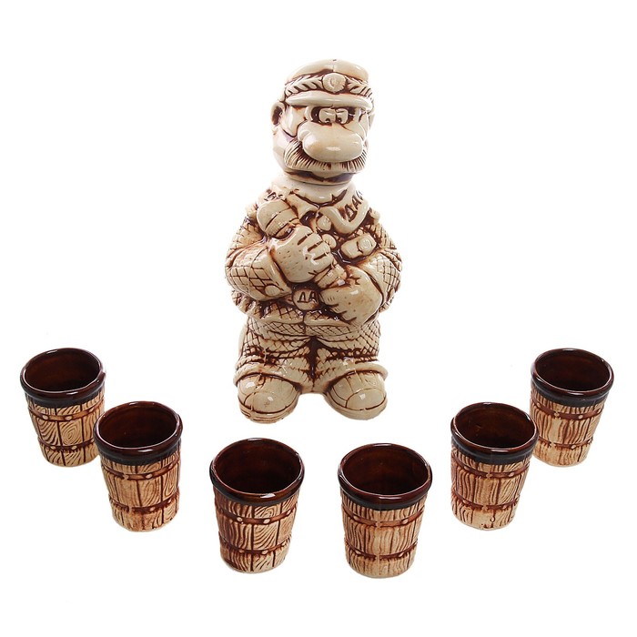 Штоф — это сосуд для крепких спиртных напитков. Он предназначен для хранения вина, водки, коньяка и настойки. К нему прилагаются оригинальные рюмки соответствующей тематики.Набор изготовлен из керамики — прочного материала, способного сохранять температуру жидкости до 4 часов, поэтому вы сможете наслаждаться охлаждёнными напитками даже во время долгих застолий.