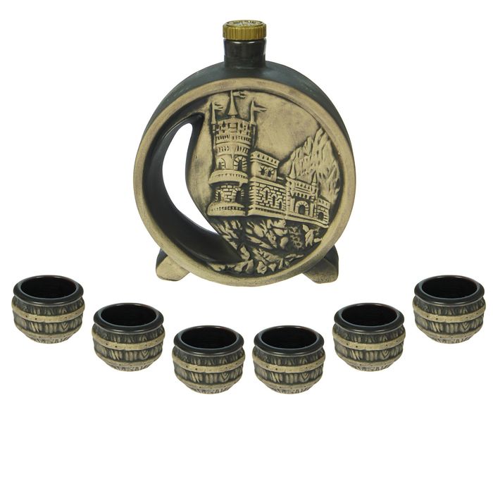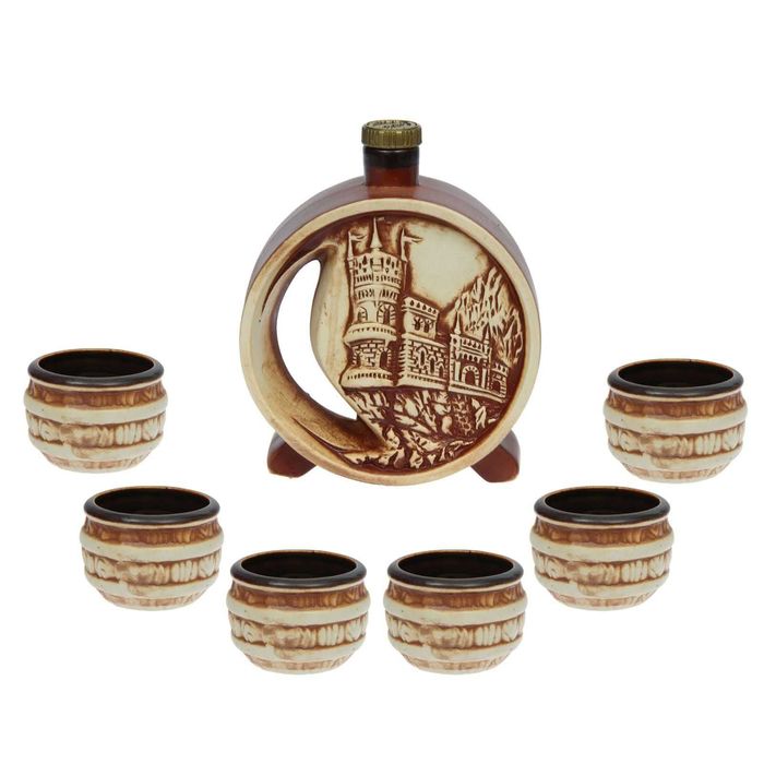 Штоф — это сосуд для крепких спиртных напитков. Он предназначен для хранения вина, водки, коньяка и настойки. К нему прилагаются оригинальные рюмки соответствующей тематики.Набор изготовлен из керамики — прочного материала, способного сохранять температуру жидкости до 4 часов, поэтому вы сможете наслаждаться охлаждёнными напитками даже во время долгих застолий.