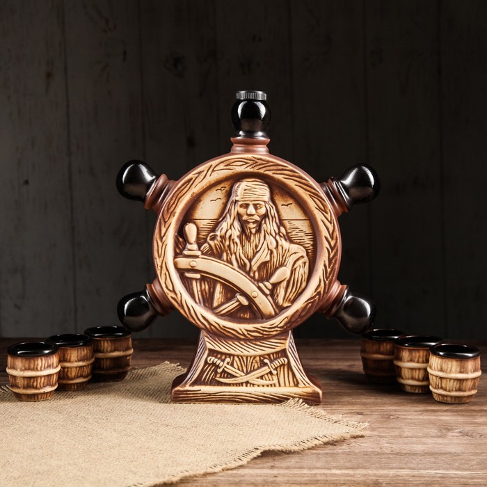 Штоф с рюмками "Пират Джек" 7 предметов, 0,7 л/ 0,05 л, микс