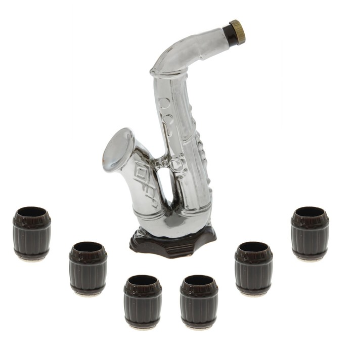 Штоф с рюмками "Саксофон", серебро, 7 предметов, 0,55 л