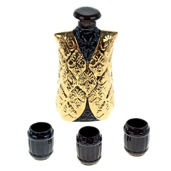 Штоф — это сосуд для крепких спиртных напитков. Он предназначен для хранения вина, водки, коньяка и настойки. К нему прилагаются оригинальные рюмки соответствующей тематики.Набор изготовлен из керамики — прочного материала, способного сохранять температуру жидкости до 4 часов, поэтому вы сможете наслаждаться охлаждёнными напитками даже во время долгих застолий.