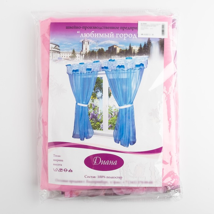 Штора для кухни "Диана" со шторной лентой, 170 х 300 см, цвет розовый, принт микс