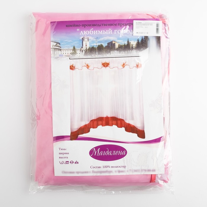 Штора для кухни "Магдалена" со шторной лентой, 180 х 300 см, цвет розовый, принт микс