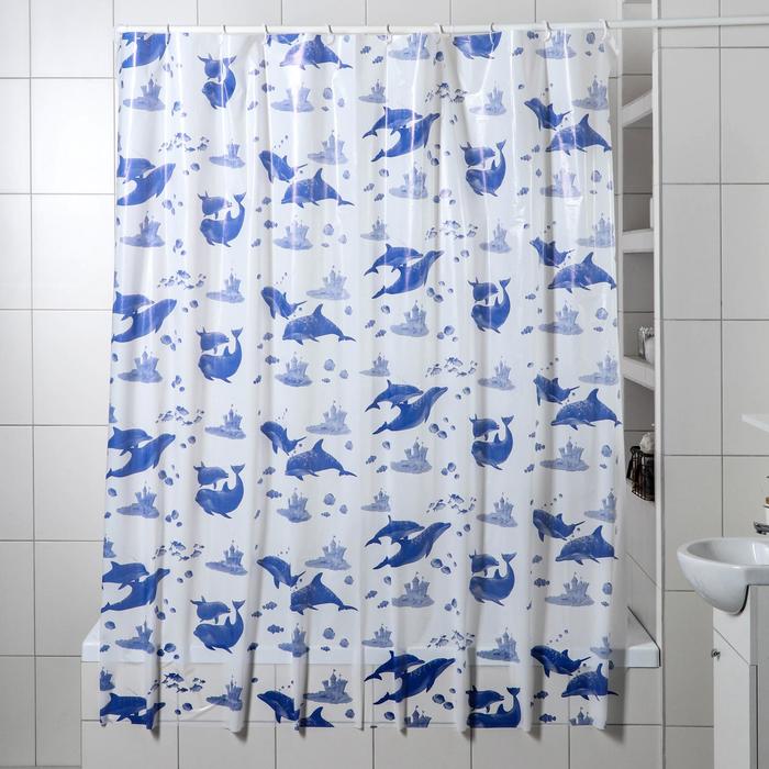 Штора для ванной 180х180 см "Дельфины", цвет белый