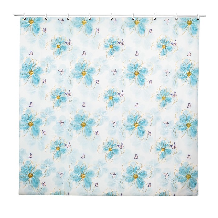 Штора для ванной "Бабочки с ромашками", 180х180 см, PEVA