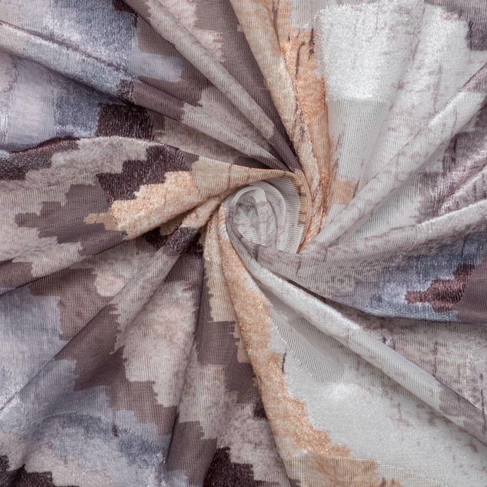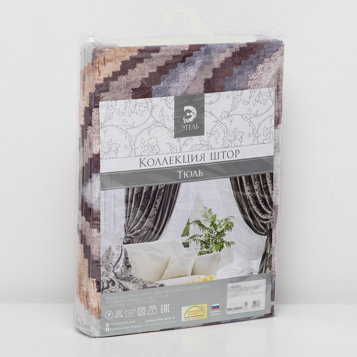 Штора тюлевая сетка с бархатом "Этель" Памир 170х250 см, коричневый,100% п/э