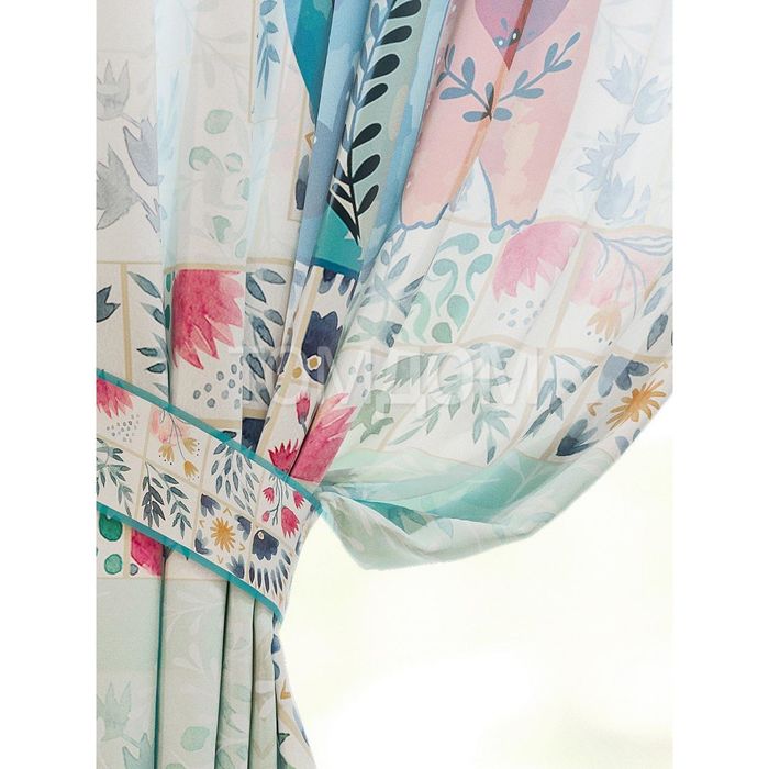 Шторы "Кетс", 150х180 см-2 шт, подхваты 2 шт, вуаль, цвет голубой