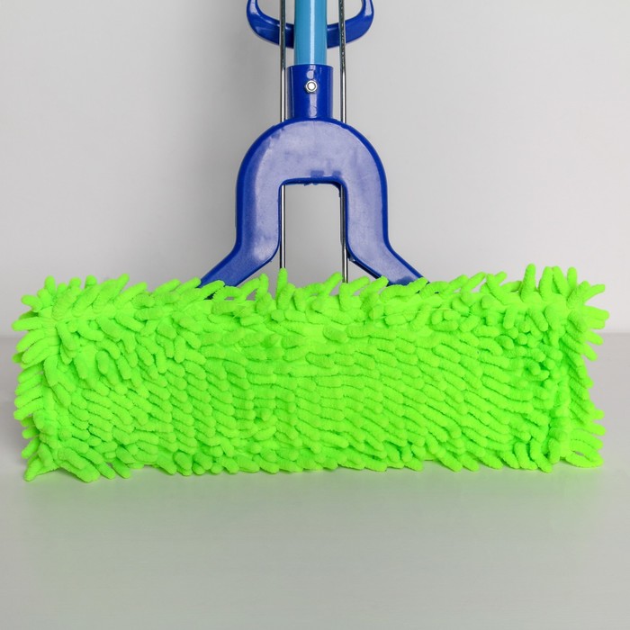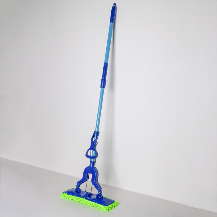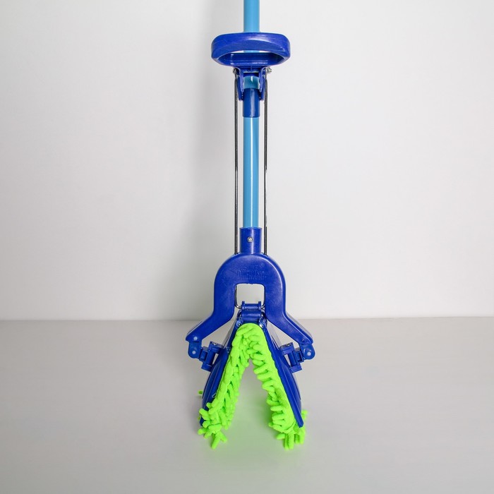 Швабра плоская со складным отжимом, телескопическая ручка 107-134 см, насадка из микрофибры
