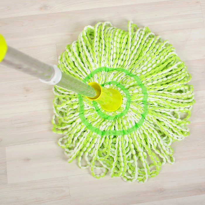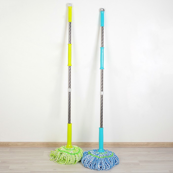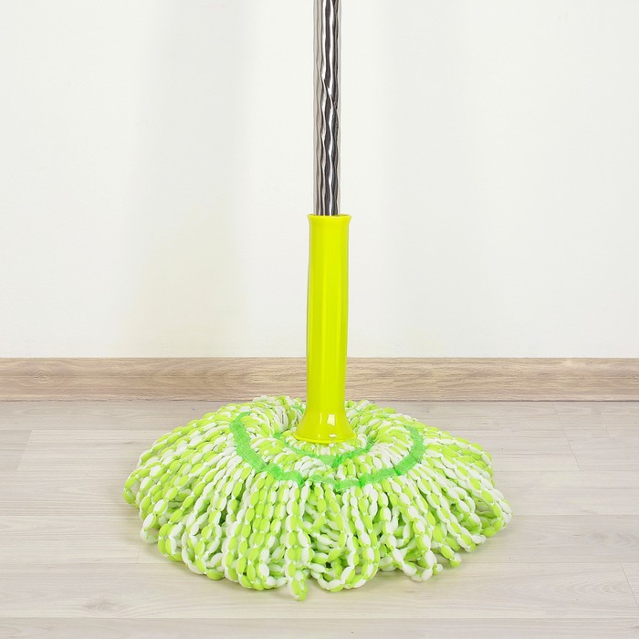 Швабра с отжимом, стальная ручка 130 см, насадка из микрофибры МИКС