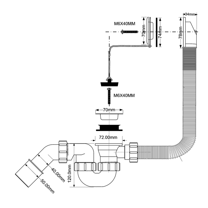 Сифон для ванны McAlpine MRB1, 1 1/2"х40/50 мм, с переливом — это часть системы слива на кухне или в ванной комнате. Изделие предназначено не только для быстрого вывода воды из сантехнического оборудования, но и сдерживания неприятных запахов внутренней части трубы.