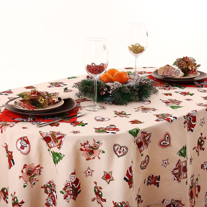 Скатерть "Доляна" Рождественские каникулы 180х150 см, 100% хлопок, рогожка, 164 г/м2