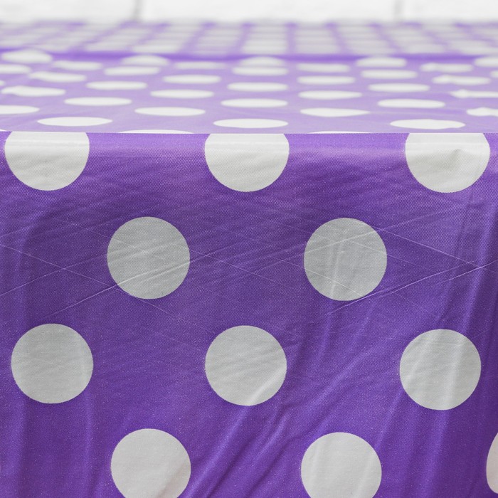 Текстильные товары пользовались большой популярностью во все времена. Это беспроигрышный подарок, ведь все любят мягкие и приятные на ощупь ткани. Скатерть фиолетовая в белый горох 132*183 см — неповторимое сочетание необычного дизайна и высокого качества.